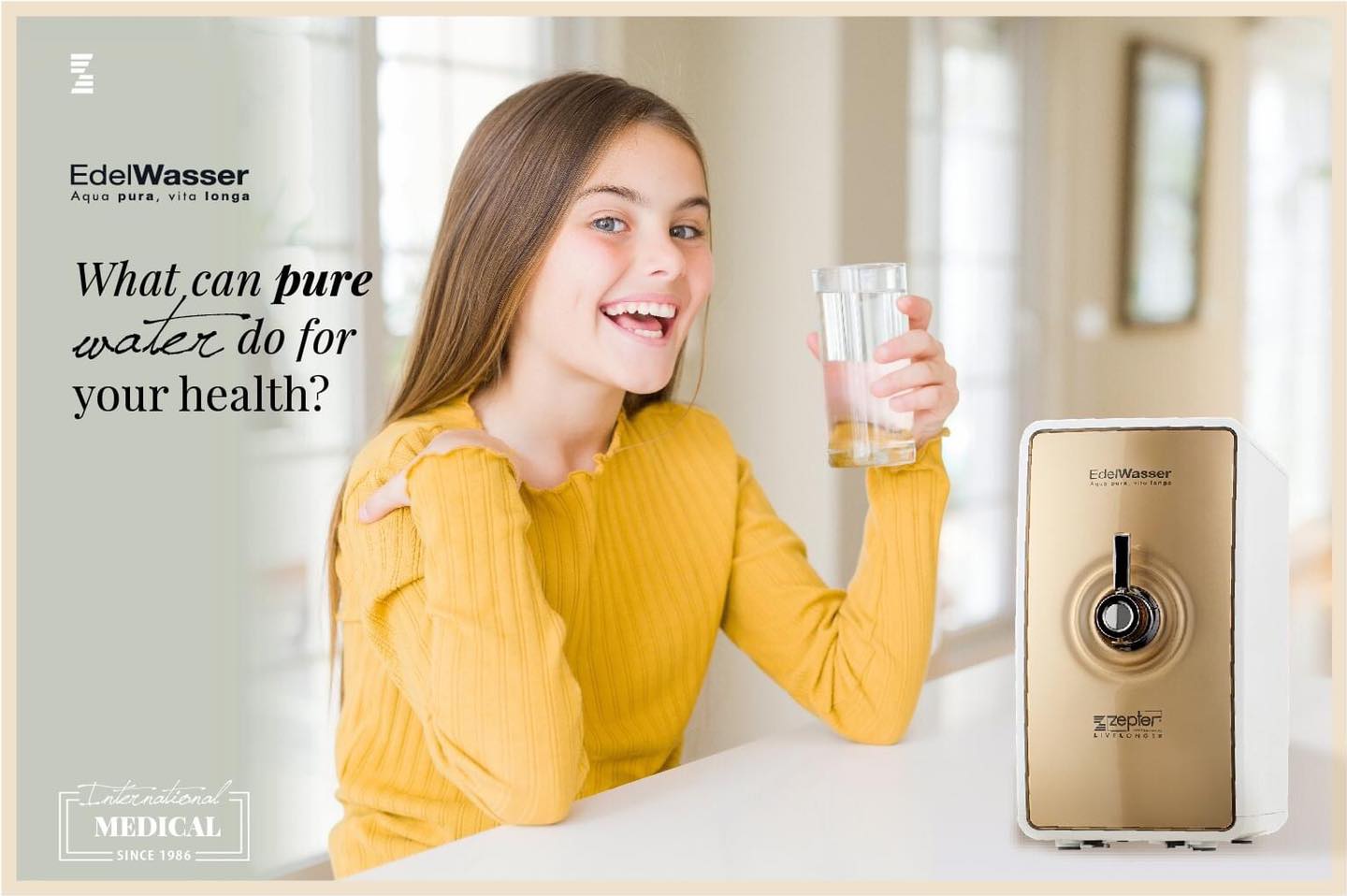 Uji i pastruar nga EdelWasser është një bekim i vërtetë për trupin, sepse nuk përmban luspa, klor, fluor, metale të rënda dhe ndotës të tjerë që përmbahen në ujin e rubinetit të qytetit.