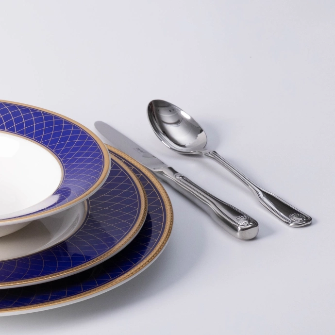 Duke mbajtur emblemën e guaskës së detit, shpesh të lidhur me lindjen e Venusit, ky set i jep bukuri dhe elegancë të përjetshme shtrimit të tryezës tuaj. Çdo pjesë ofron shpërndarje të mirë të peshës dhe një kapje të shkëlqyer.